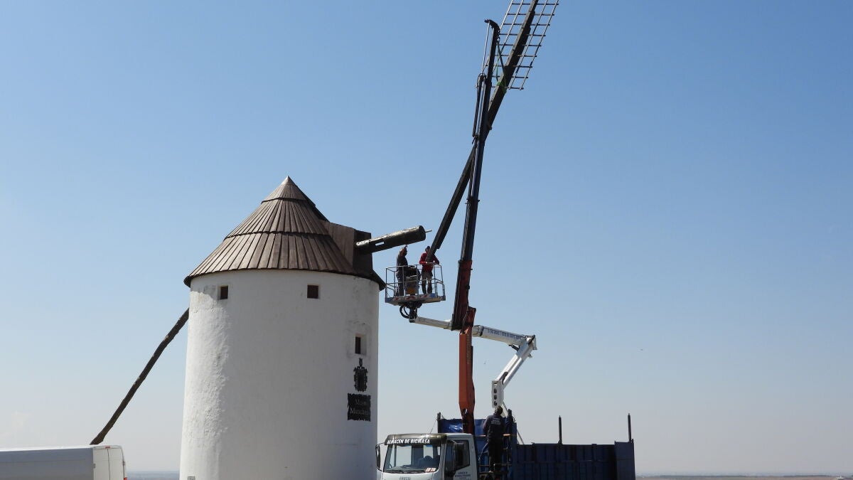 Los trabajos, que han concluido este mes de abril, han consistido en la sustitución del eje y en la reparación de las aspas de este molino en el que tiene su sede la Asociación de "Amigos de los Molinos" de La Mancha conquense.