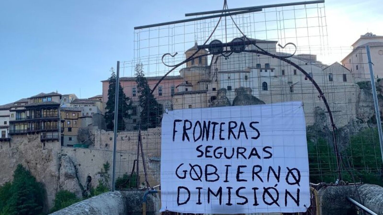 "Fronteras seguras. Gobierno dimisión", rezaba la pancarta con letras negras y fondo blanco.