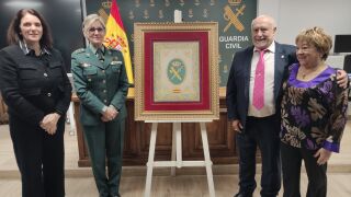 La Teniente Coronel Jefe de la Comandancia de la Guardia Civil de Guadalajara, Cristina Moreno, ha recibido de manos del pintor Ricardo Sánchez-Pardo Roldán, una acuarela del escudo de la Guardia Civil, que el pintor ha tenido a bien entregar a esta Comandancia.
