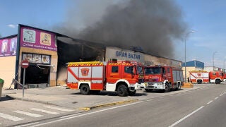 El aviso del fuego se ha originado a las 6.43 horas en el kilómetro 35 de la A-4 en esta nave que albergaba principalmente baterías de teléfonos móviles y ordenadores portátiles.