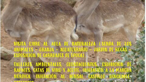 - Visita libre al Aula de Naturaleza (Senda de los Animales, granja, acuaterrario, jardín de rocas, exposición de carruajes de época y aves de corral).