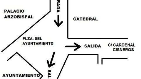 - Salida: la salida se llevará a cabo por la calle Cardenal Cisneros (Puerta Llana) o hacia las calles Ciudad, Santa Isabel y Pozo Amargo.