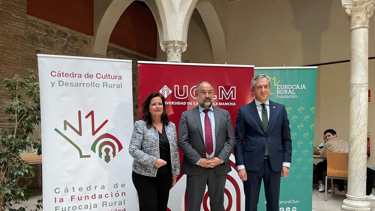 Al acto de entrega, celebrado en la iglesia-paraninfo de San Pedro Mártir, en Toledo, han asistido también la directora de la Cátedra Fundación Eurocaja Rural-UCLM Cultura y Desarrollo Rural, Rebeca Rubio, y la gerente de la Fundación Eurocaja Rural, Susana Cortés.