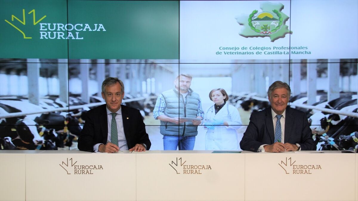 Propiciar el desarrollo de su actividad y cubrir las necesidades de inversión del colectivo son algunos de los objetivos marcados por ambas partes en este convenio que fue suscrito por el presidente de Eurocaja Rural, Javier López Martín, y el presidente del Consejo de Colegios Profesionales de Veterinarios de CLM, Luis Alberto García Alía.