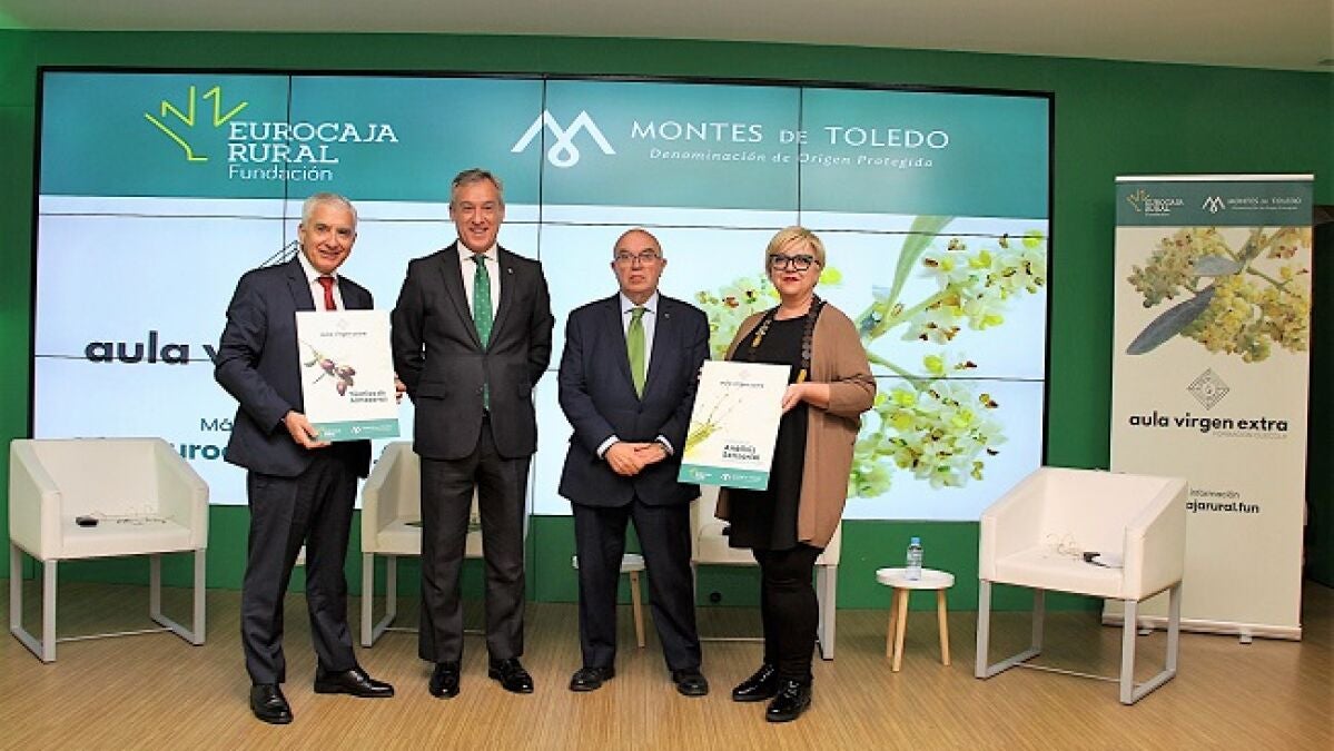 La Fundación Eurocaja Rural y la D.O.P. Montes de Toledo han presentado esta mañana el programa formativo 'Aula Virgen Extra', un nuevo proyecto común de colaboración que ofrecerá una formación técnica y de calidad para profesionalizar el trabajo que desarrolla el personal de almazaras.