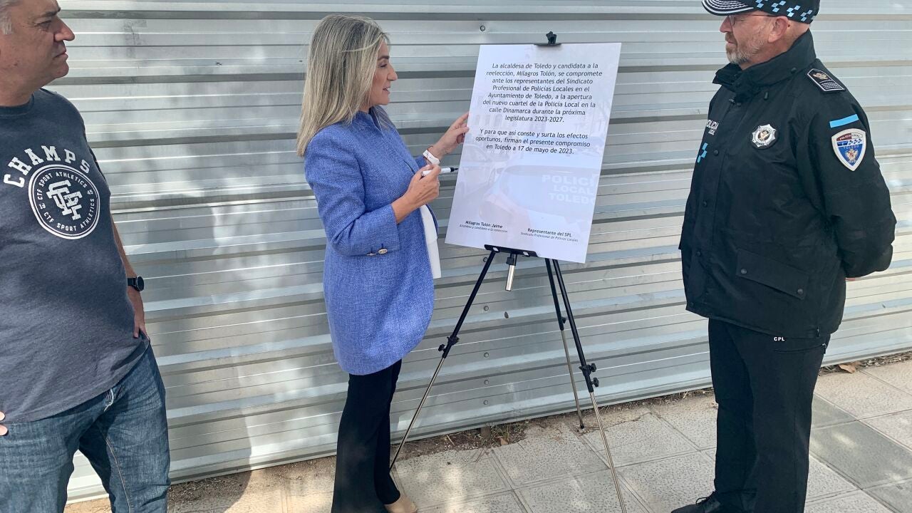 La alcaldesa de Toledo y candidata a la reelección, Milagros Tolón, ha firmado este miércoles con el Sindicato de la Policía Local (SPL) el compromiso de abrir el cuartel de la Policía Local en la calle Dinamarca durante la legislatura 2023-2027. Se trata del lugar elegido por los agentes para albergar estas dependencias.