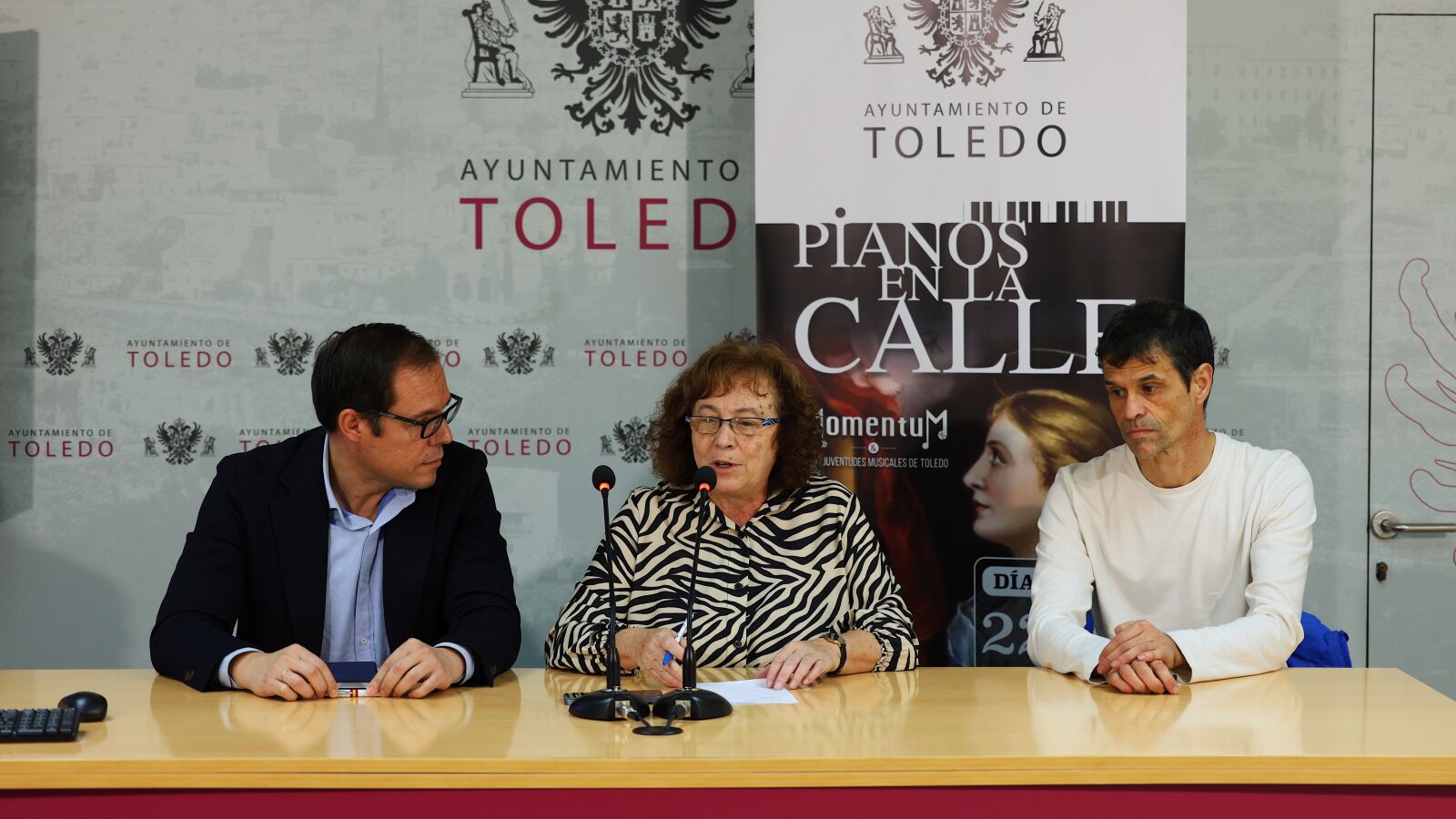 La concejal de Cultura, Ana Pérez ha presentado la iniciativa “Pianos en la calle”, que este año coincidirá con Santa Cecilia, para celebrar con música, el Día de la Música y de los músicos. Durante la presentación ha estado acompañada por el concejal de Educación, Daniel Morcillo, y por el coordinador de Momentum-Toledo, José Antonio Saldaña.
