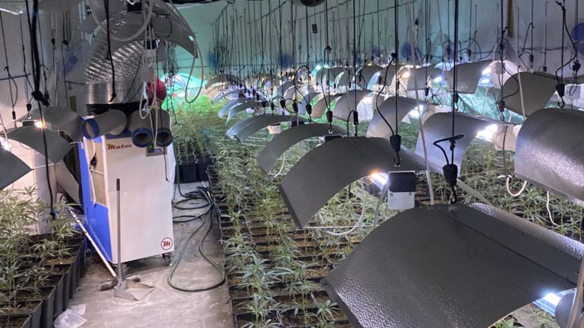 La investigación policial logró situar el lugar exacto, resultando ser una nave industrial, en cuyo interior había una estructura fabricada con pladur y materiales aislantes, tras la que se ocultaban 1.100 plantas de cannabis.