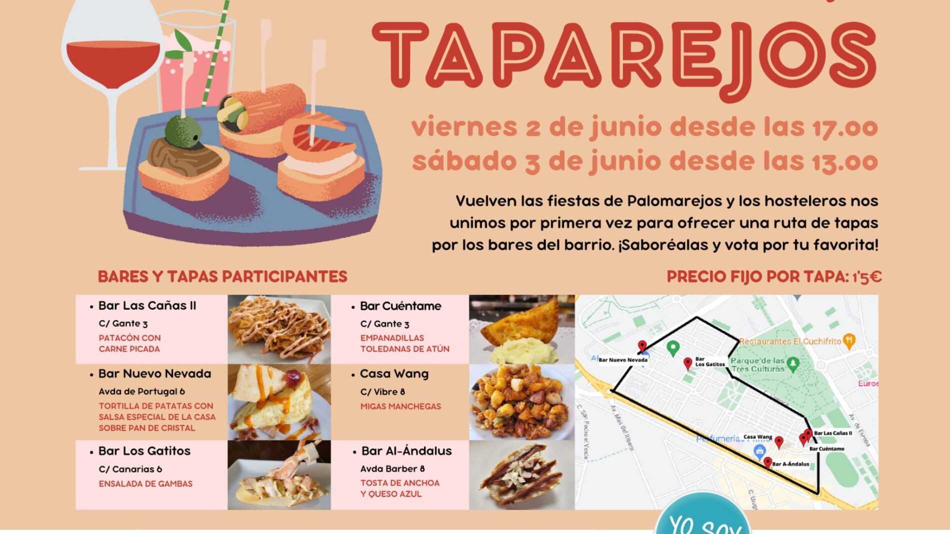 Se trata de la primera ruta de tapas en el barrio de Palomarejos, que comenzará el viernes 2 desde las 17:00 horas y el sábado 3 desde las 13:00 horas, en la que bares como Cuéntame, Nueva Nevada, Los Gatitos, Casa Wang, Al Ándalus y Las Cañas II se suman a esta iniciativa sacando lo mejor de sus cocinas.