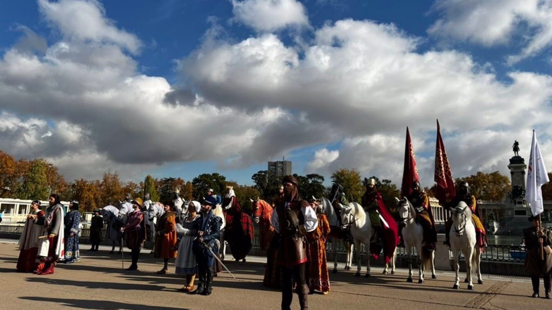 El parque temático Puy du Fou ha desembarcado con una nutrida representación de los personajes que le ayudan a relatar la historia de España en sus instalaciones de Toledo, entre ellos El Cid, Cristóbal Colón o Lope de Vega en El Retiro de Madrid.