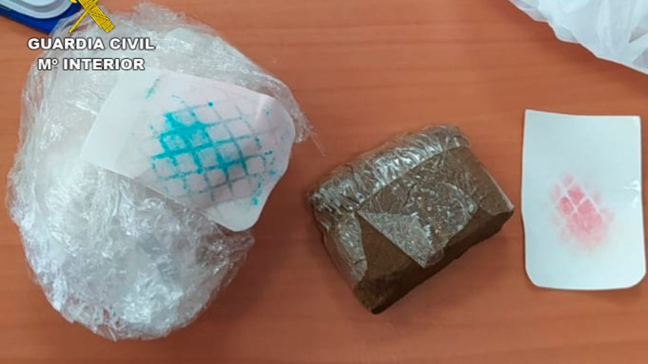 El resultado fue la incautación de 63 gramos de cocaína y 40 gramos de hachís, envueltos en dos paquetes de plástico transparente y ocultos en uno de los compartimentos del vehículo.