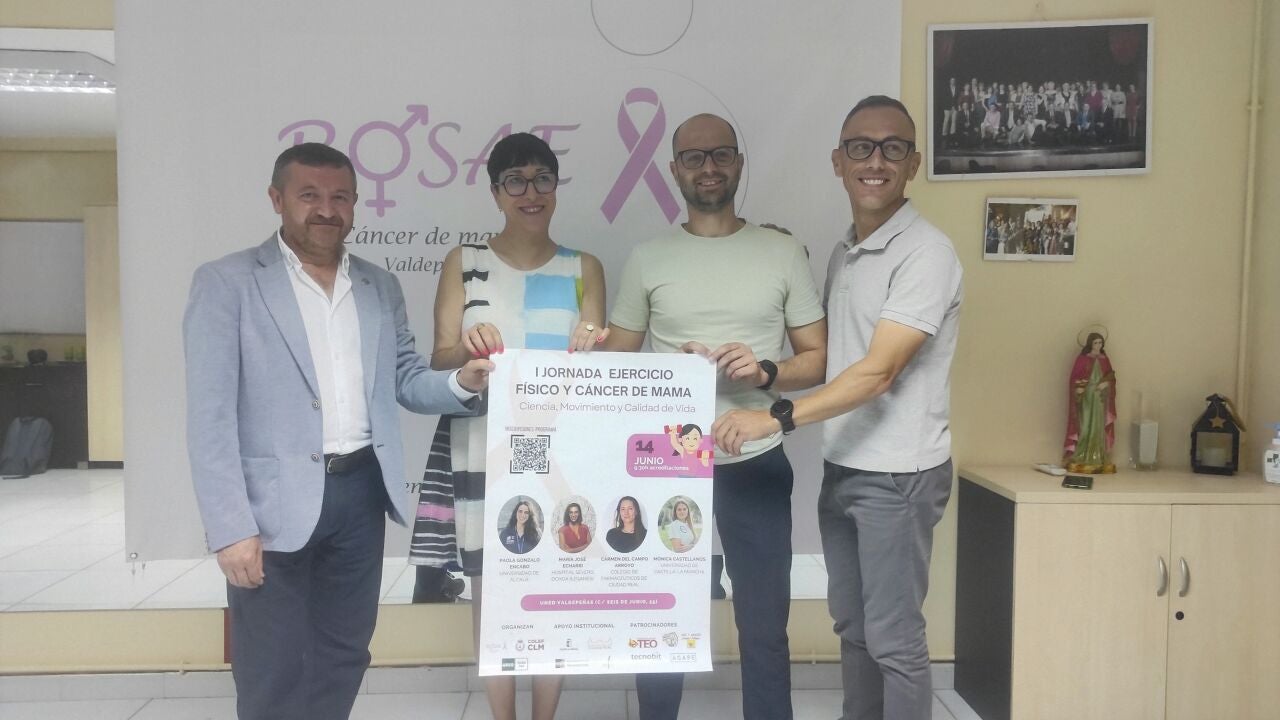Las primeras Jornadas de Ejercicio Físico y Cáncer de Mama "Ciencia, movimiento y calidad de vida" se celebran en Valdepeñas, el próximo 14 de junio, organizadas por ROSAE, asociación de mujeres afectadas por esta enfermedad, la Universidad Nacional de Educación a Distancia y el COLEF, el Colegio de Licenciados de Educación Física de Castilla-La Mancha.