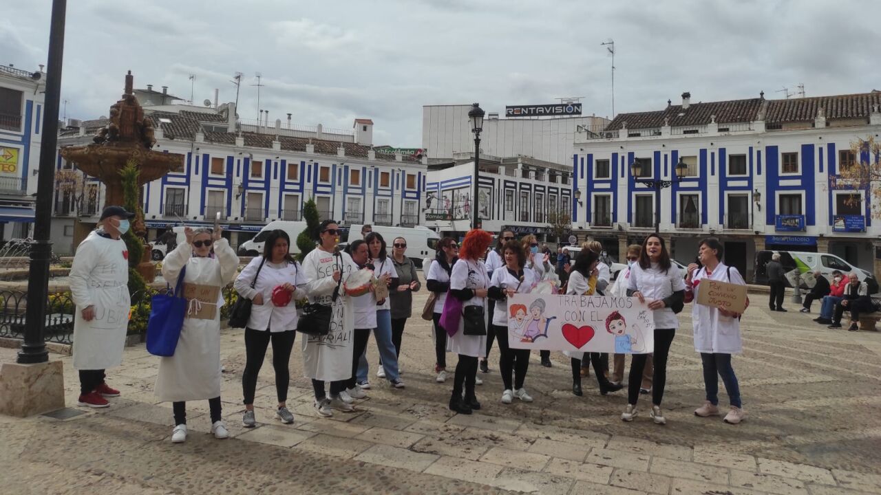 Todas respaldan la huelga indefinida que, desde ayer, ha comenzado a nivel provincial para reivindicar un convenio colectivo justo. En Valdepeñas son 40 personas que trabajan, a través de subcontratas, en el sector de Ayuda a Domicilio. Piden condiciones dignas y un salario razonable, que se valore su labor, como parte integrante del colectivo sociosanitario.