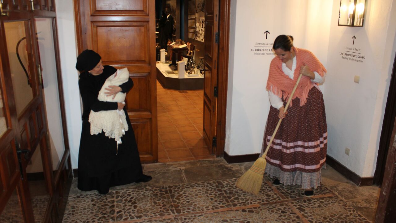 El Museo Etnográfico de Villanueva de los Infantes invita a sumergirse en épocas pasadas con una visita teatralizada, a cargo del grupo Pequeña Escena. Las actrices Mercedes Gutiérrez y Ana Isabel Romero se meten en el papel de dos "mujeres de antes" para mostrar cómo vivían otras generaciones en esta zona. Una forma lúdica de descubrir o recordar modos de vida tradicionales, explica el concejal de Cultura y Turismo, Francisco Javier Peinado.