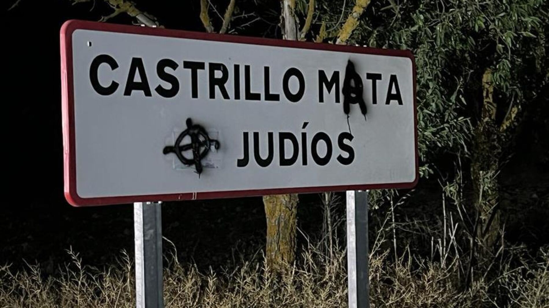 Las pintadas han aparecido en varios focos concretos del pueblo, como en las señales de la carretera y paredes cerca del futuro centro de la Memoria Sefardí, que se está terminando en la localidad.