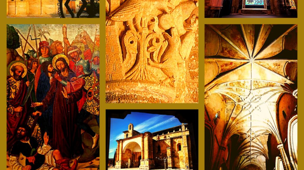 Comienzo en la iglesia de San Martín de Tours (estilo románico del XI) a las horas estipuladas, explicación del interior, estructura y decoración de este templo para continuar hacia la iglesia de San Pedro (siglo XV al XVI) y su museo sacro deleitándose con las 29 tablas hispano flamencas del XV que hoy en día se encuentran allí, pero que correspondían al retablo Mayor de la última iglesia a visitar en este itinerario siendo Sta. María del Castillo (gótica tardía) en la que se ubica un montaje multimedia llamado Vestigia, Leyenda del Camino que invita a adentrarse en el Camino de Santiago a su paso por estas tierras de la mano del patrón del municipio Don Pedro González Telmo “San Telmo”.
