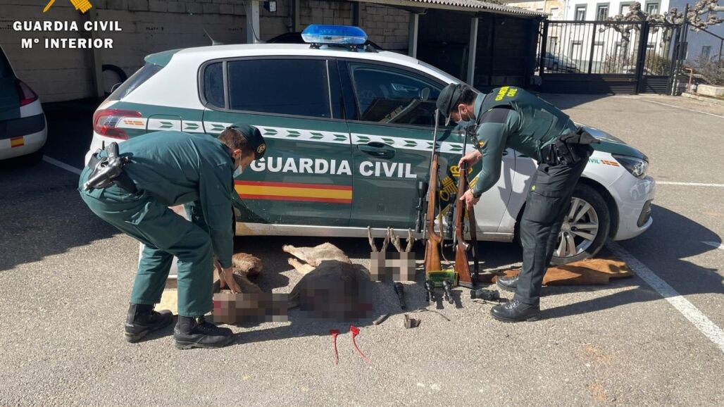 Se les incautaron 2 rifles, 3 focos, 1 visor térmico y una navaja de 17 cm. de hoja. Las cabezas de los animales, fueron entregadas a agentes medioambientales de la Junta de Castilla y León.