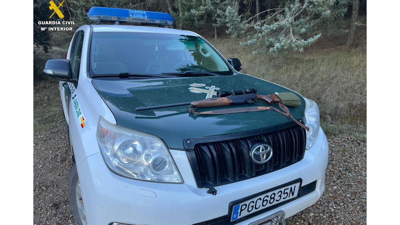 Tras identificar a los tres ocupantes y verificar la documentación, se comprobó que la persona que portaba el arma carecía de autorización para cazar en el coto en que se encontraban. En ese mismo momento, se procedió su investigación por el referido delito y al decomiso del arma, quedando depositada en dependencias oficiales de la Guardia Civil.