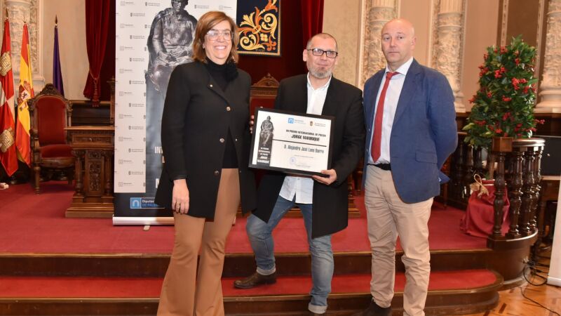 El salón de actos del Palacio Provincial ha puesto el marco a la entrega del premio de la VII edición del Premio Internacional de Poesía Jorge Manrique. Una nueva edición de este galardón que convoca la Diputación de Palencia y el Ayuntamiento de Paredes de Nava localidad natal del poeta palentino del Prerrenacimiento.