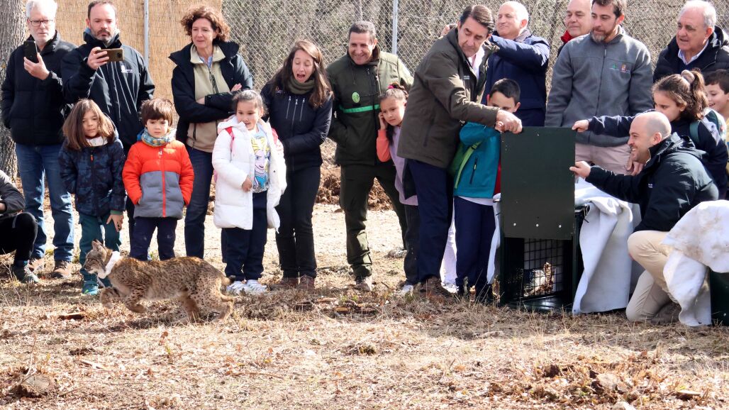 El consejero de Medio Ambiente, Vivienda y Ordenación del Territorio, Juan Carlos Suárez-Quiñones, junto con el director general de Patrimonio Natural y Política Forestal, José Ángel Arranz, y el delegado territorial de la Junta en Palencia, José Antonio Rubio Mielgo, han procedido a la liberación de dos nuevos ejemplares de lince ibérico, Villano y Viñegra, que se suman a los dos anteriores, siendo un total de cuatro ejemplares los soltados en El Cerrato palentino en lo que va de año. En las próximas semanas, se llevará a cabo la misma acción con otros dos animales hasta alcanzar los seis linces en 2025.