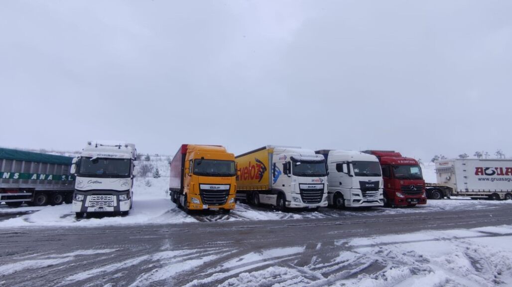 La delegada del Gobierno, Virginia Barcones, advertía esta mañana que el estado de las carreteras podría empemorar a lo largo de esta tarde. Tras conocerse que la nieve provoca que se establezca el nivel Rojo en la A67 entre los kilómetros 103 y 117,5 se adopta la decisión de embolsar camiones en la localidad de Aguilar de Campoo.