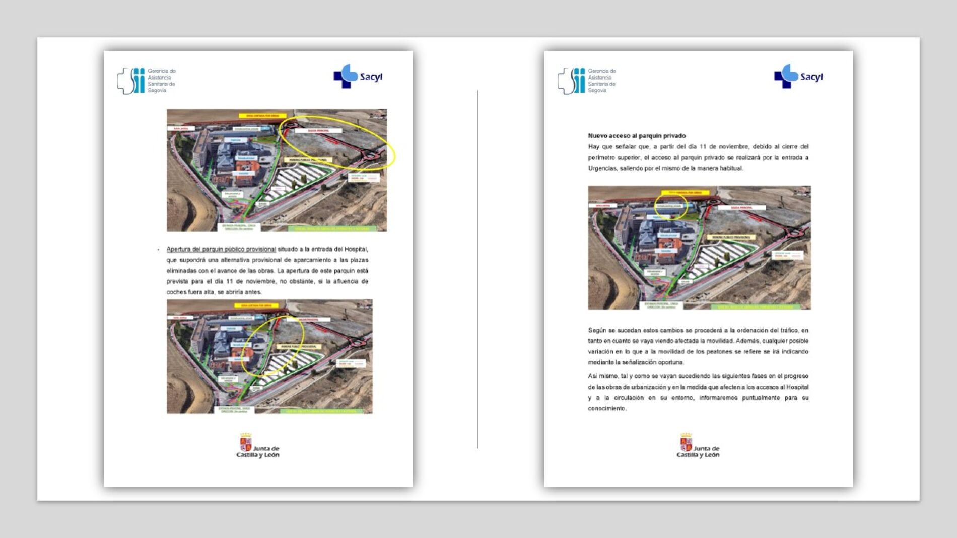 Ese mismo día se abrirá el parking provisional situado a la entrada del centro y el acceso al aparcamiento de pago se realizará por la entrada de Urgencias, la salida se mantendrá como ahora.