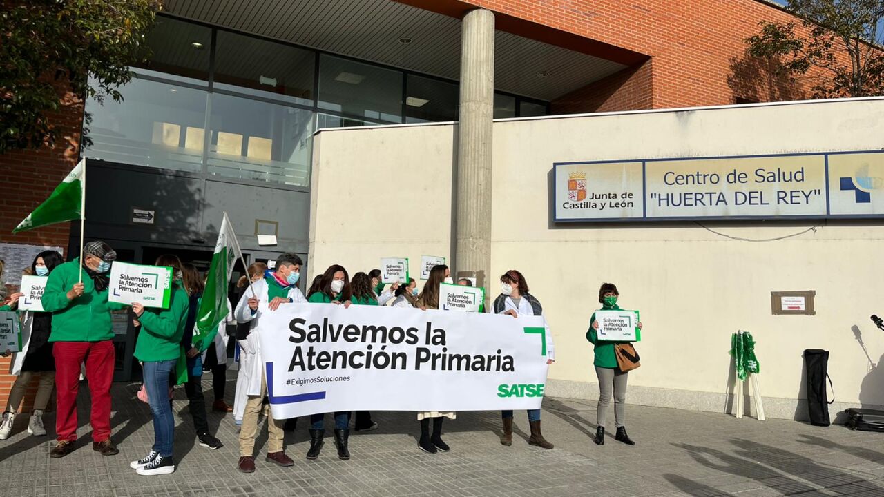 Enfermeras, enfermeros y fisioterapeutas se han concentrado hoy en el centro de salud de Huerta del Rey, en Valladolid, para denunciar la grave situación de deterioro y precariedad que sufre la Atención Primaria y para exigir a la Consejería de Sanidad de la Comunidad que no la abandone “a su suerte” y mejore la atención sanitaria y cuidados que recibe el conjunto de la ciudadanía.