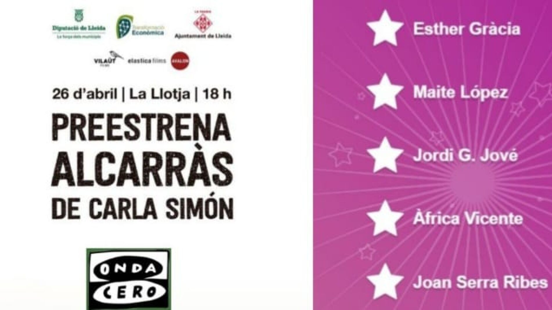 La Diputació de Lleida i la Paeria estan dissenyant l'acte de la preestrena d'Alcarràs com un gran homenatge a la pagesia de Ponent, especialment afectada fa tant sols una setmana per unes importants gelades que han malmès unes 50.000 hectàrees de fruita. El passi comptarà amb la presència de diverses autoritats polítiques. També de la directora Carla Simón i la pràctica totalitat de l'equip de rodatge i actors i actrius, tots ells veïns de les comarques de Ponent. Des d’Onda Cero Lleida us convidem a assistir a la preestrena de la pel·lícula, on es preveu un miler de persones de públic. Hi haurà catifa verda en comptes de vermella, en el que vol ser una picada d'ull a la pagesia, i també es farà un tast de productes de proximitat. Quin són els guanyadors?Esther GràciaMaite LópezJordi G. JovéÀfrica VicenteJoan Serra Ribes