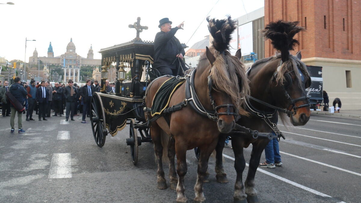 Allí, han hecho una vuelta a pie en la plaza siguiendo un coche de caballos que llevaba un ataúd, simulando una marcha fúnebre con el objetivo de escenificar el funeral del sector.