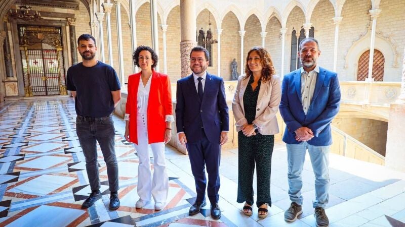 Pere Aragonès i Marta Rovira han enviat un missatge a Pedro Sánchez i Salvador Illa durant la rebuda institucional que el Govern ha ofert a la líder provisional d’Esquerra, al diputat de la formació Ruben Wagensberg i al vicepresident d’Òmnium Oleguer Serra.