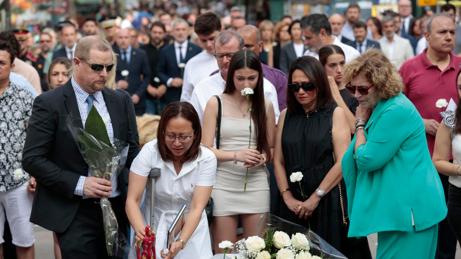 Tras el minuto de silencio, los asistentes han hecho una ofrenda floral, depositando claveles y rosas blancas, así como una figura del de 'Iron Man', mientras sonaba el 'Cant dels Ocells' a cargo del violonchelista Marçat Ayats.