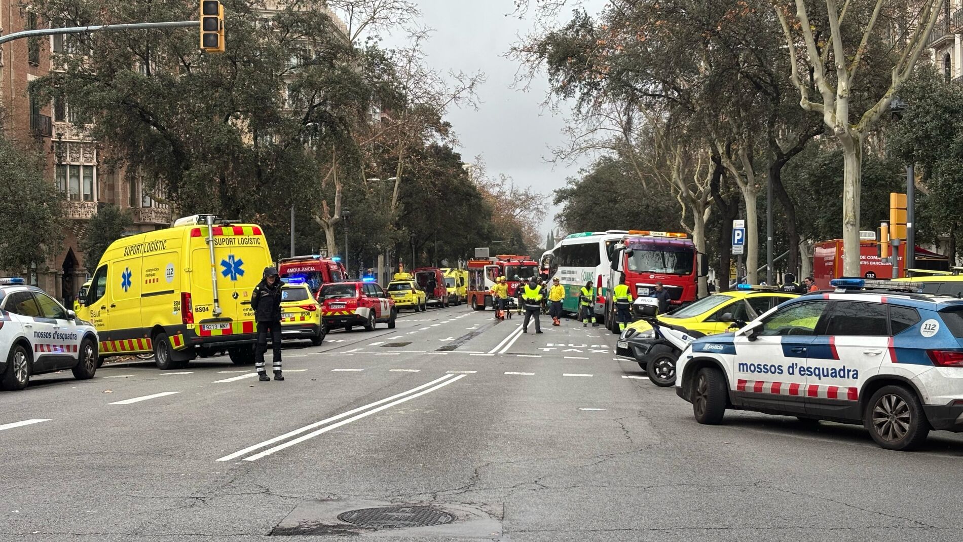 Decenas de personas han resultado heridas este lunes por la tarde en un choque de dos autocares en la avenida Diagonal de Barcelona, a la altura del número 361, según ha informado Protecció Civil.