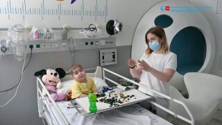 El Hospital Gregorio Marañon atiende a cinco niños llegados desde Ucrania en su Unidad de Oncohematología Pediátrica. Mientras que cuatros de ellos reciben atención ambulatoria, Diomid, de tres años, ha tenido que quedarse ingresado porque padece una inmunodeficiencia combinada severa y recibió un trasplante de médula hace seis meses.