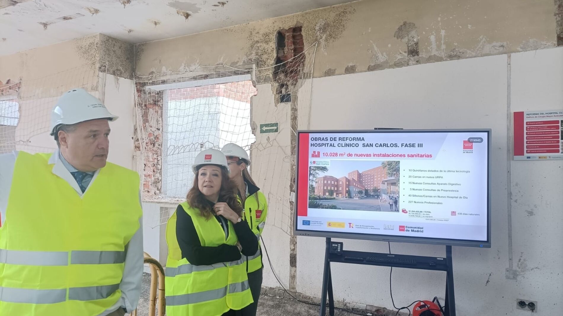 La consejera de Sanidad de la Comunidad de Madrid, Fátima Matute, ha destacado este lunes que el Hospital público Universitario Clínico San Carlos contará con diez nuevos quirófanos de Cirugía Mayor Ambulatoria, lo que permitirá alcanzar las 40.000 intervenciones anuales en este ámbito dentro del Sistema Madrileño de Salud. Matute ha supervisado los trabajos de la tercera fase de modernización del complejo hospitalario, actualmente en su penúltima etapa, en la que el Gobierno regional invierte 20,7 millones de euros. Está previsto que las obras concluyan en el primer trimestre de 2027. “Este ambicioso proyecto aumentará la capacidad asistencial del Clínico San Carlos, con nuevas instalaciones y avances que permitirán seguir ofreciendo a la población de referencia una atención sanitaria de la máxima calidad”, ha afirmado la consejera durante la visita.