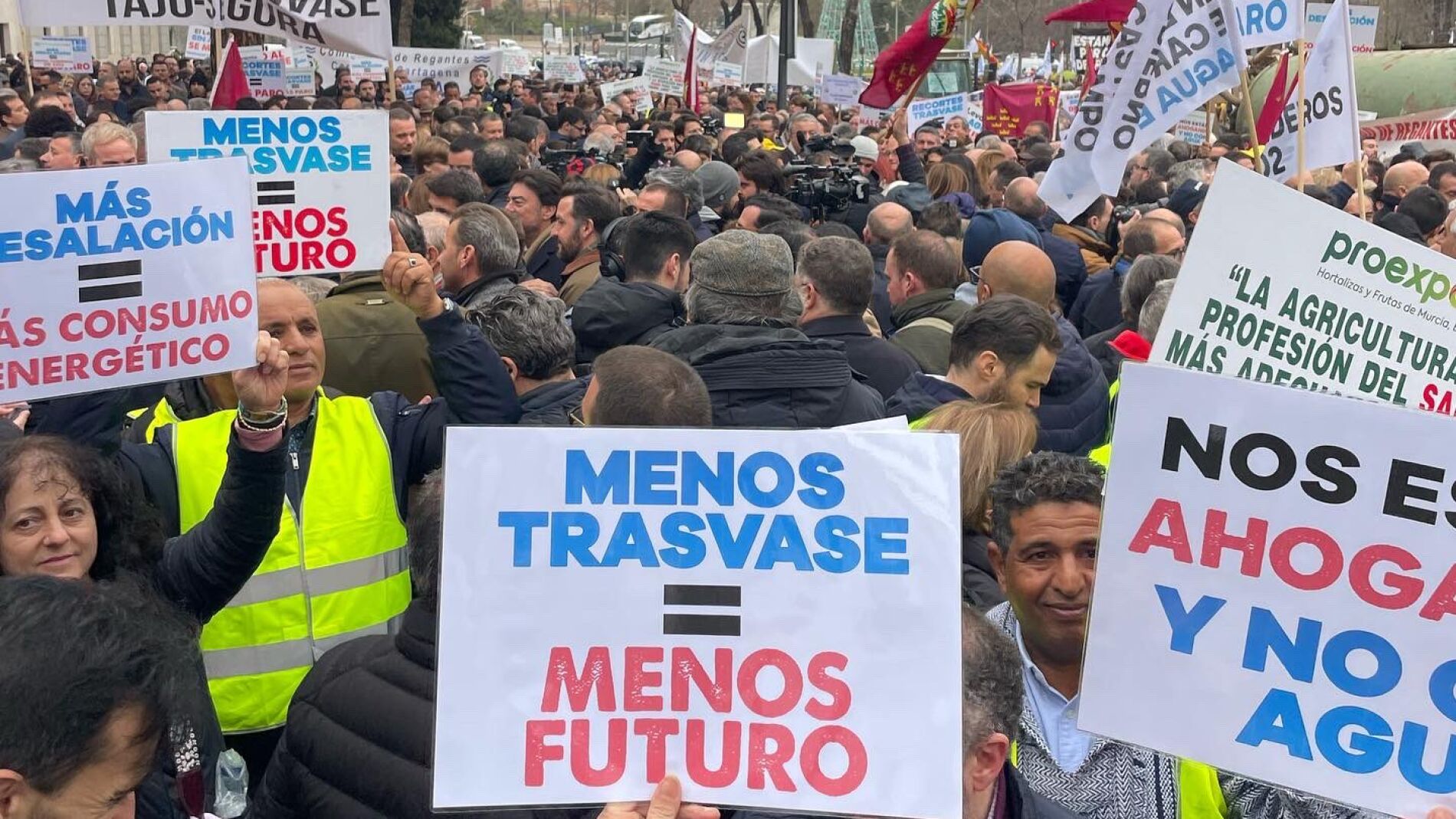Los regantes protestan porque estiman que este recorte a las transferencias de agua de riego provocarán la pérdida de 15.000 empleos y una reducción de valor patrimonial de 5.692 millones de euros y defienden que "no hay alternativa a la disminución del volumen de agua disponible".