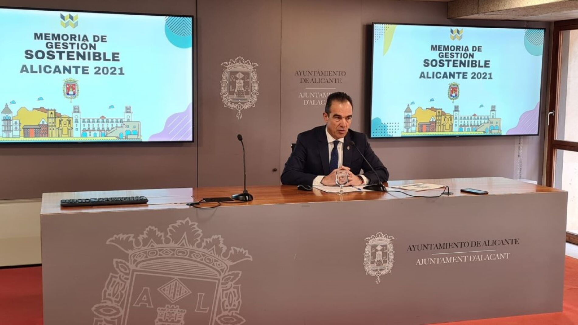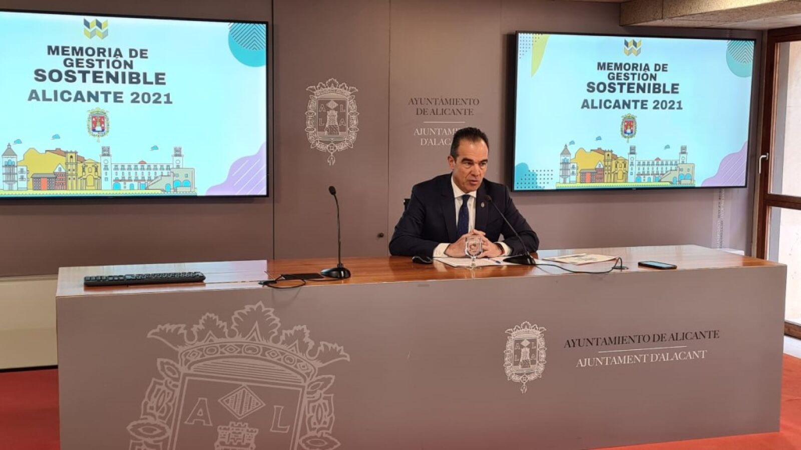 El concejal de Presidencia, Nueva Tecnologías y Coordinación de Proyectos, Antonio Peral, ha presentado este miércoles la Memoria de Sostenibilidad de Alicante 2021, que arroja resultados destacados “como la mejora de la eficiencia energética en un 9% o el aumento del gasto social en un 4,5%”. El documento, de cien páginas, se titula “La Ciudad abierta, inteligente, verde, innovadora e inclusiva”, y realiza un balance de la sostenibilidad en sus tres ejes: los asuntos económicos, sociales y medioambientales.