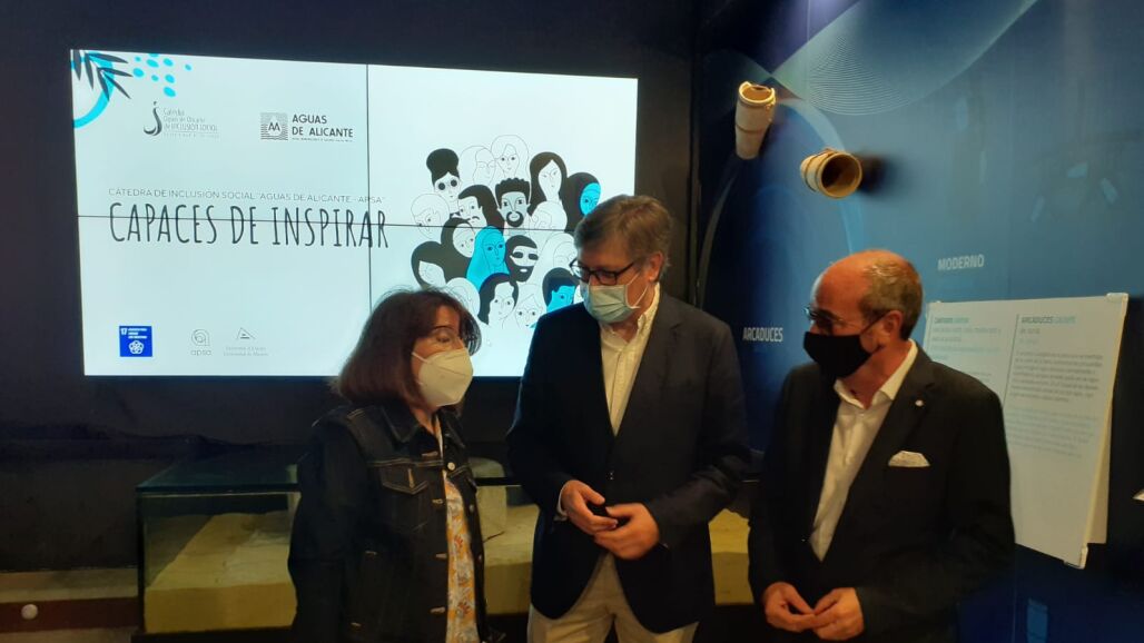 El Museo de Aguas de Alicante ha sido el escenario elegido para hacer balance de los cuatro años de vida de la Cátedra de Inclusión Social “Aguas de Alicante-APSA” de la Universidad de Alicante en la que han participado la rectora, Amparo Navarro, el director de Aguas Municipalizadas de Alicante, Javier Díez y el gerente de APSA, Carlos Giner.