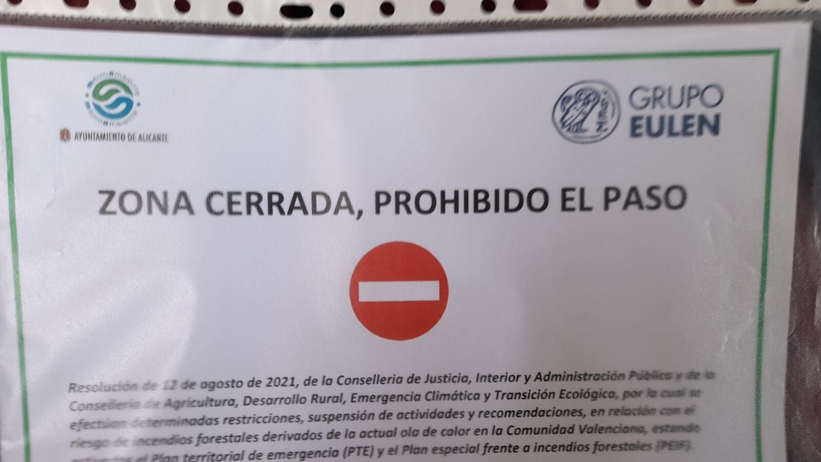 La citada resolución del Consell supone la aplicación de medidas preventivas de obligado cumplimiento como la prohibición del tránsito de personas por senderos y campo a través y la suspensión de actividades en los espacios forestales y otras como el uso festivo-recreativo del fuego con motivos festivos.