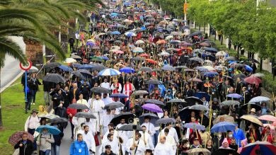 Alicante sale al encuentro de la Santa Faz este jueves con miles de romeros en sus calles y con un tiempo soleado. Más de 1.200 agentes y voluntarios velarán por la seguridad durante la romería que arranca a las 8 de la mañana desde la concatedral de San Nicolás, tras el reparto de 15.000 cañas. La Peregrina discurrirá a lo largo de algo más de seis kilómetros hasta el Monasterio por las nuevas calles engalanadas y realizará la tradicional 'paraeta' a mitad del recorrido donde se repartirá mistela y rollitos de anís, en una 535 edición que se espera de récord con la ayuda de un tiempo con buenas temperaturas.