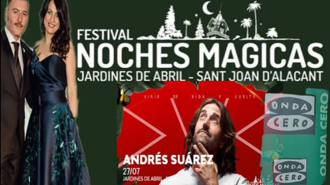 Andrés Suárez pisa de nuevo el escenario del Festival Noches Mágicas, esta vez con su gira Viaje de Vida y Vuelta, correspondiente a su noveno álbum el más vivo, dinámico y enérgico del artista, que salió a la luz el pasado febrero llegando a posicionarse como número uno dentro de las listas de discos más vendidos en nuestro país.
