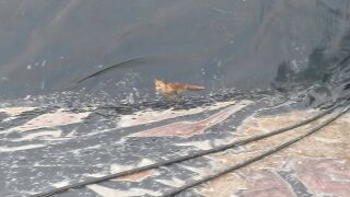 Agentes de la Policía Local de El Campello y efectivos de bomberos han rescatado a un pequeño zorro que cayó el martes en el fondo de una balsa de riego que, afortunadamente no contenía agua.