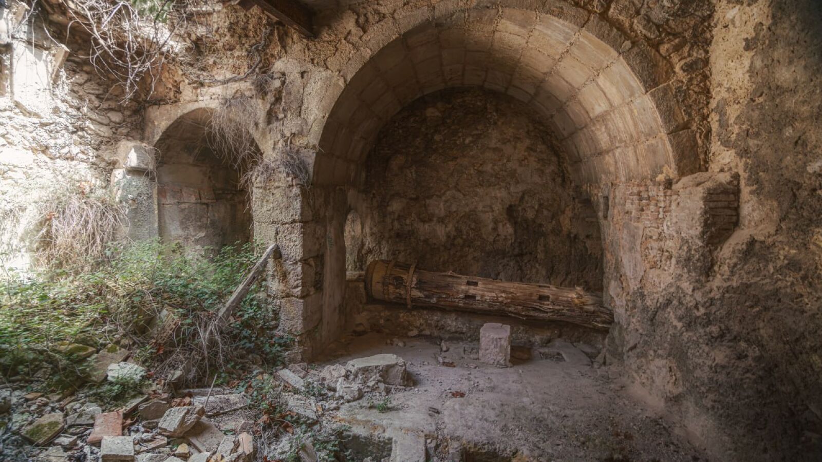 De hecho, a pocos metros de donde ha aparecido el batán de Romualdet, se encuentra una estancia edificada mediante bóvedas de 20 palmos y que, a pesar de ser la más resistente de todo el molino por las características de su construcción, se está desintegrando a pasos agigantados por la falta de actuaciones ante un enorme boquete que avanza desde hace años por la acción del agua de lluvia y las inclemencias meteorológicas. Es sólo una muestra más del estado catastrófico de conservación de la mayoría de los molinos del paraje, muchos de ellos reducidos ya a meros montículos de escombros.