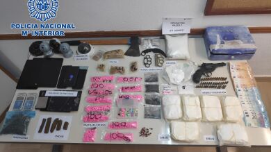 En uno de esos registros los agentes también localizaron un revólver del calibre 45 preparado para disparar y más munición de otros calibres, así como útiles y material de los utilizado para el tráfico de drogas.