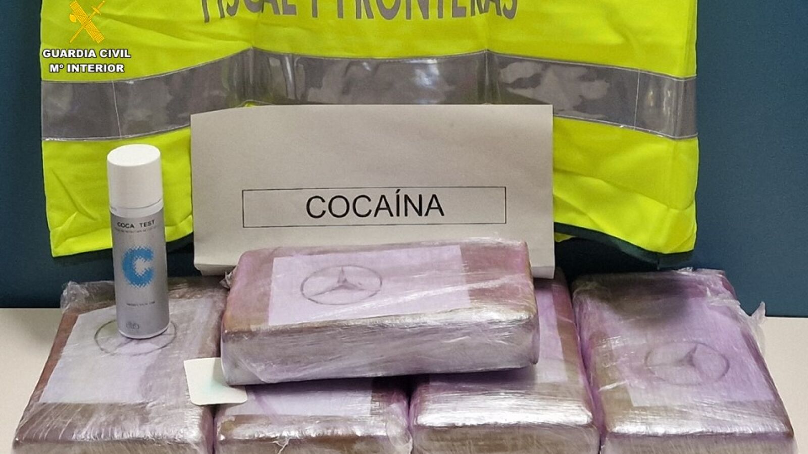Tras remover la plancha, descubrieron cinco paquetes envueltos en cinta transparente. En estos paquetes, envasados al vacío e impregnados de olor para evitar la detección, hallaron un total de 5.632 gramos de cocaína.