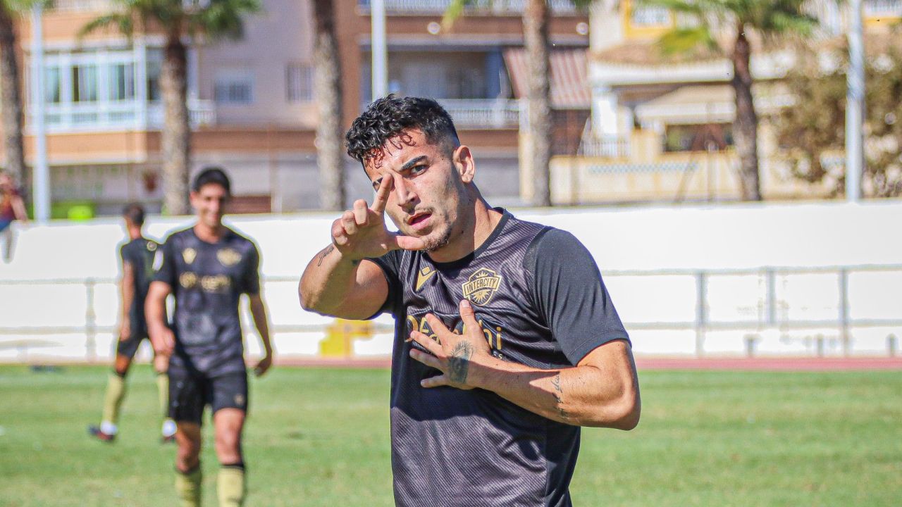 Eric Jiménez marcó el pasado domingo su primer gol con el Intercity. El extremo catalán redondeó la goleada ante el Marchamalo y puso su granito de arena para lograr la cuarta victoria consecutiva de los hombres de negro.