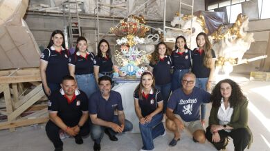 Espadero ha realizado estas manifestaciones durante la visita que el alcalde Luis Barcala, junto con la concejal de Fiestas, Cristina Cutanda, integrantes de la Corporación Municipal; el presidente de la Federació de Fogueres, David Olivares; las Belleas del Foc -Alba Muñoz y Martina Lloret- y sus Damas de Honor, han realizado a su taller. Antes han visitado el local donde Sergio Gómez concluye la infantil oficial 'Llum d´Alacant'.