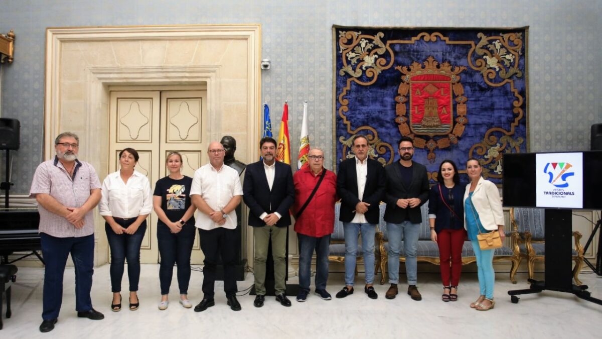 El alcalde de Alicante, Luis Barcala, ha recibido en el Salón Azul a los representantes de la Federació de Festes Tradicionals d´Alacant, presidida por Óscar Llopis, y a los representantes de las seis celebraciones distinguidas por la Generalitat.