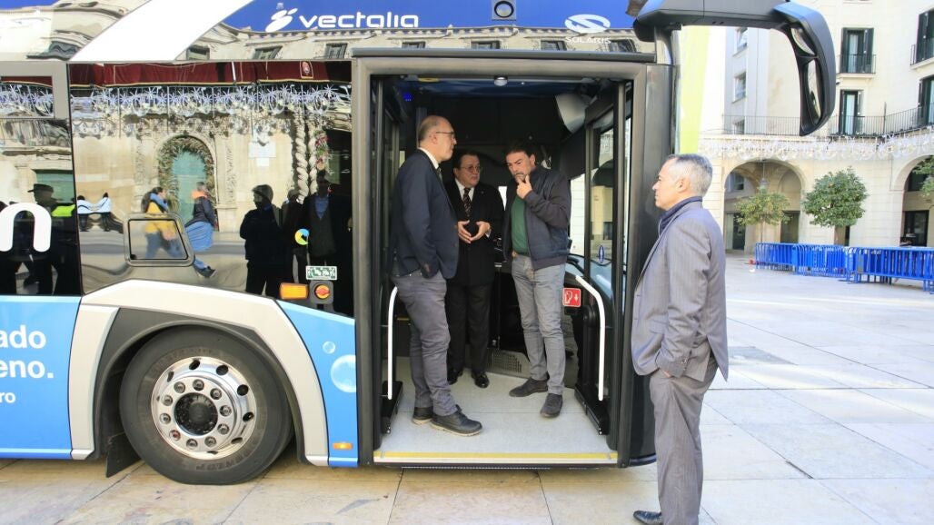 Luis Barcala, junto al consejero delegado del grupo Vectalia, Antonio Arias, ha explicado el compromiso de Alicante con la sostenibilidad y la preservación del planeta mediante la incorporación progresiva de un total de 42 vehículos cero al parque móvil de la ciudad que servirá para reducir significativamente la huella de carbono del transporte urbano.