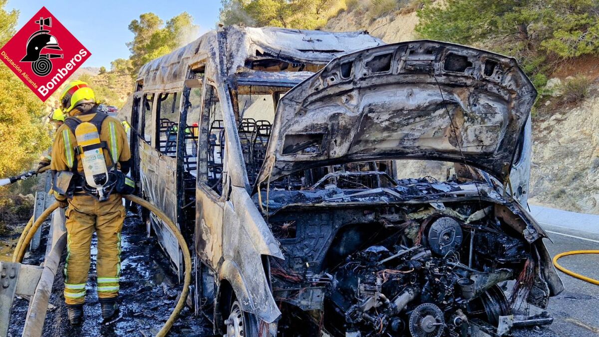 El aviso se ha recibido pasadas las 10:00 de la mañana desde el kilómetro 2,8 de la carretera de El Campello a Aigües. Al llegar los efectivos, los pasajeros habían abandonado el minibús pero el derrame de combustible había extendido el fuego hasta la vegetación anexa a la cuneta de la carretera.