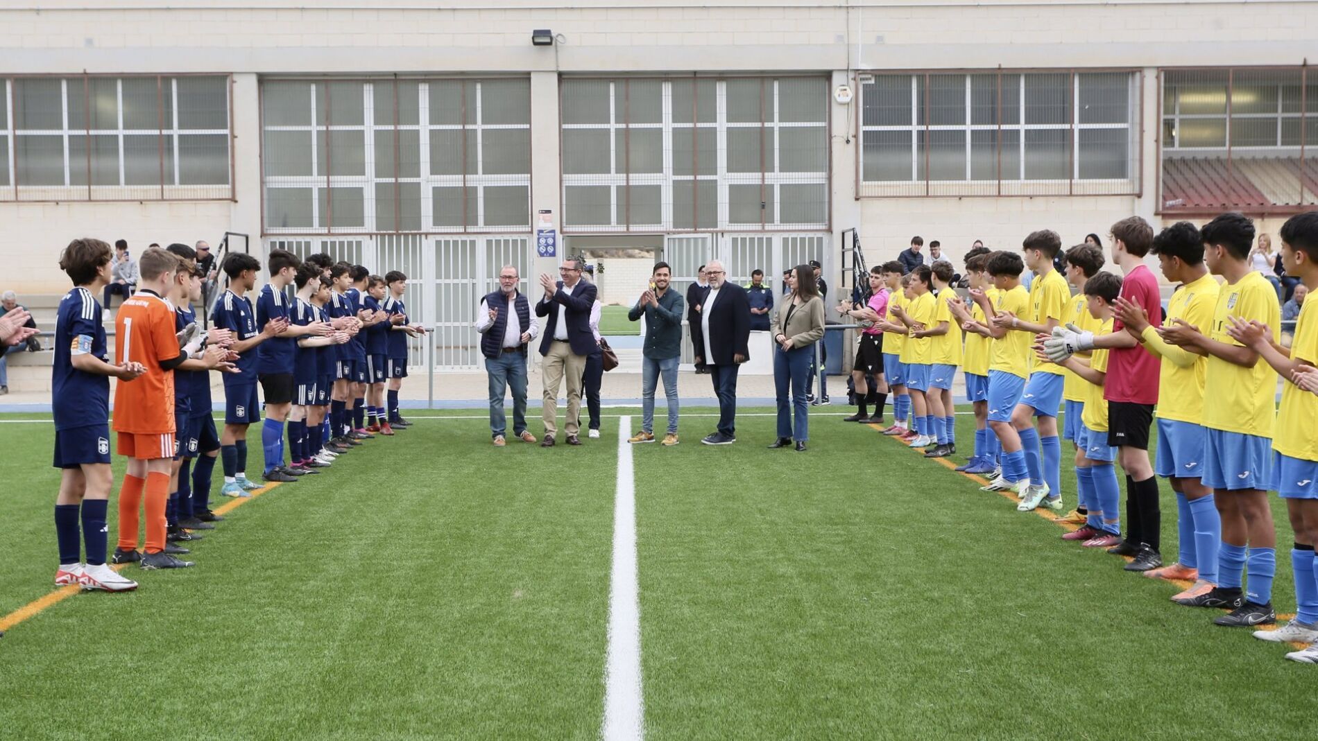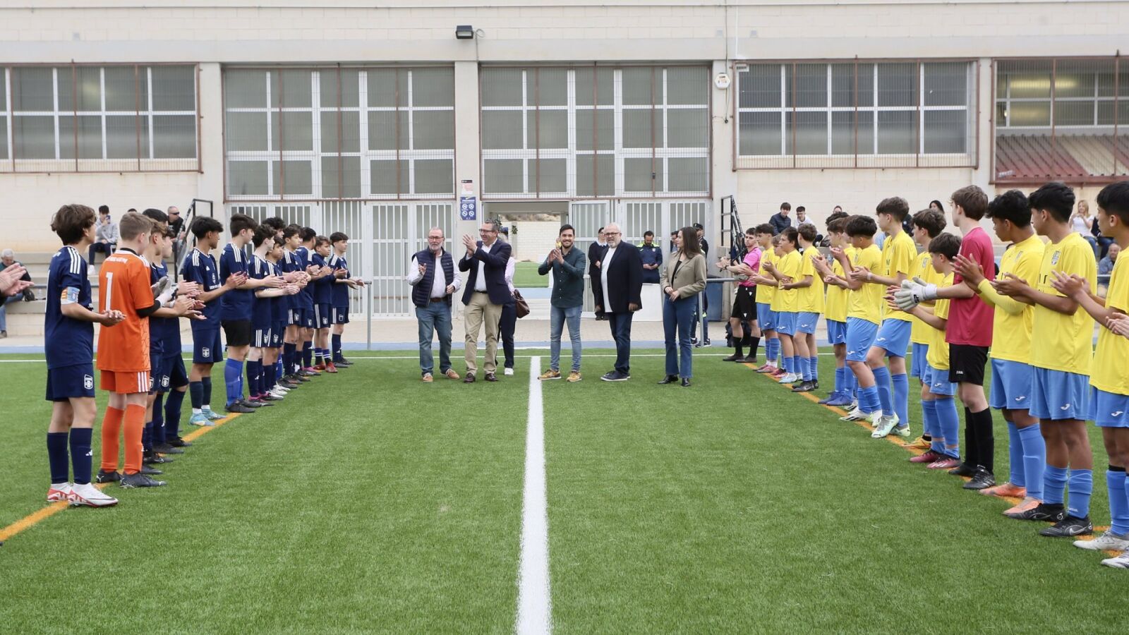 El nuevo campo se ha inaugurado con un partido de fútbol entre los cadetes del CD El Campello y el CF Benidorm, en un acto en el que se han sumado numerosos vecinos de la localidad y que ha contado con la asistencia de la diputada provincial y concejala de Recursos Humanos, Lourdes Llopis, el concejal de Deportes, Cristian Palomares, y la diputada provincial Raquel Marín.